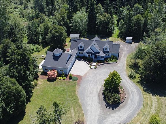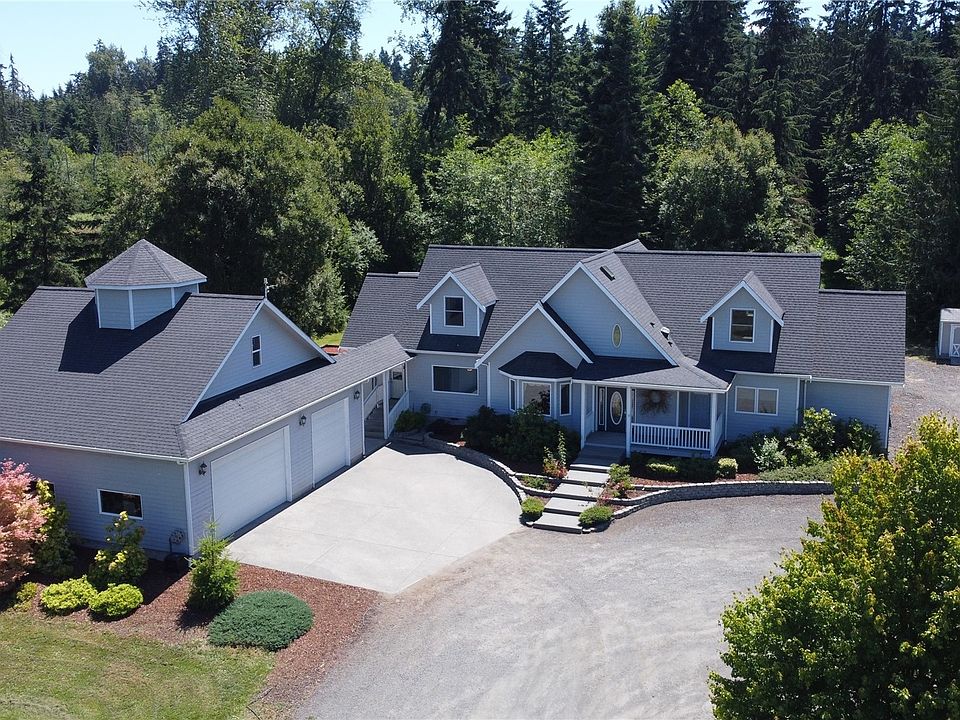 Private, 5 acres estate in a great location! Spacious, custom built home with an open floorplan. 3757 sq. ft featuring an amazing chef's kitchen with cherry cabinets, double oven w/ warmer drawer, garbage compactor, granite counter tops and beautiful appliances. Separate formal dining room and a breakfast nook. True main floor living with the primary suite, 5 piece primary bath, kitchen, dining, laundry, solarium/sunroom and covered patio all on the main floor. 2 additional bedrooms and a full bath upstairs. Also on the main floor is the 4th bedroom with a separate, exterior entrance, use as a bedroom, media room, office or?? Wired for sound throughout. Huge 1726 sq. ft garage with shop space and 220 power.