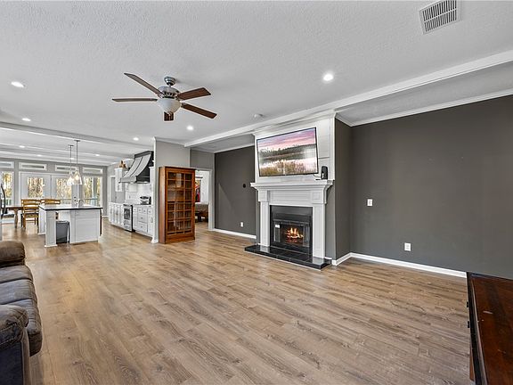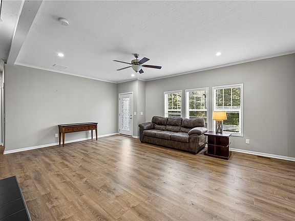Welcome home to this move-in-ready three-bedroom, two full-bath doublewide offering 1,800+ square feet of comfortable living, perfectly situated on 1.96 unrestricted, private acres with excellent topography. Built in 2021, this home features 9-foot ceilings and a spacious open floor plan designed for both everyday living and entertaining. The large kitchen includes a center island and flows seamlessly into the living area, where a cozy fireplace creates a warm focal point. A covered side porch provides the perfect spot to relax and enjoy the peaceful setting, while a dedicated laundry room adds everyday convenience.