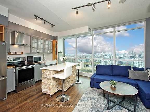 Upscale luxury downtown condo featuring 9-foot ceilings, a custom kitchen, and stunning unobstructed views of the Toronto skyline, CN Tower & Lake Ontario from the entire suite. This Airbnb-permitted building offers residents exclusive access to Club Odyssey, an impressive amenity hub with a fully equipped gym, sauna, yoga studio, residents' lounge, indoor pool, and jacuzzi. Enjoy the 8th-floor rooftop garden terrace, perfect for entertaining or relaxing with city views.Located in the heart of Fort York, steps from Harbourfront and Liberty Village. Walking distance to TTC streetcars, Loblaws, Shoppers Drug Mart, LCBO, Starbucks, Tim Hortons, and a variety of local cafes, parks, and schools. Minutes to Coronation Park, the Martin Goodman Trail, Billy Bishop Airport, BMO Field, CNE, and STACKT Market.Walk to CN Tower, Rogers Centre, Ripley's Aquarium, Scotiabank Arena, and Union Station - all just minutes away. Quick access to the Gardiner Expressway and Lakeshore Boulevard for seamless commuting. With an exceptional Transit Score of 98 and Walk Score of 92, this location is a commuter's dream.Safe and secure building with high-end security and a vibrant social committee fostering a strong sense of community. Whether you're buying, renting, or investing, Neptune Condos offer the perfect blend of luxury, convenience, and long-term value in Toronto's prime waterfront district.