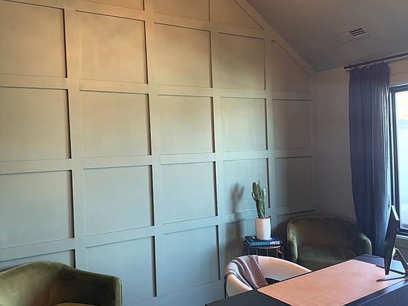 This spacious designer townhome features 3 bedrooms, 3.5 baths, and a sleek open-concept layout, complete with high-end finishes, and features a 2-car tandem garage. The chef's kitchen is equipped with stainless steel appliances, quartz countertops, tiled backsplash, a waterfall kitchen island, and a bonus wine fridge. Dining room with accent wall and built-in shelves. Living room with electric blinds and a wall bump-out with a flatscreen TV included. Washer/Dryer Included. Each bedroom with electric blinds and accent walls includes its own en-suite bathroom and closet. The top floor bedroom has access to a rooftop terrace - ideal for entertaining with seasonal skyline views - and can also function as a flex space.