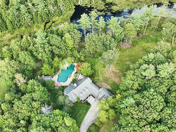 MAGNIFICENT LUXURY HOME WITH POND AND MOUNTAIN VIEWS. This custom home offers a rare blend of luxury, comfort, and resort-style amenities—all set against sweeping mountain and pond views. Thoughtfully designed for both entertaining and everyday living, it features vaulted ceilings, French doors, and an open-concept layout connecting the kitchen, dining, and family spaces. The first-floor primary suite includes a spa-like bath and an expansive walk-in closet, while upstairs offers three additional bedrooms and two full baths. The walkout lower level is built for fun, complete with a glass-enclosed theater, second kitchen, a walk in wine cellar and spacious game area. Step outside and be transported : the grounds feature a free-form pool with waterfall, hot tub with bar, and a heated pool house with fieldstone fireplace creating an ideal setting for entertaining in every season. A professionally designed short-game golf complex features a putting surface and rare 90+ yard approach shot—adding a unique finishing touch. Luxury, recreation, and incredible views—this home has it all.