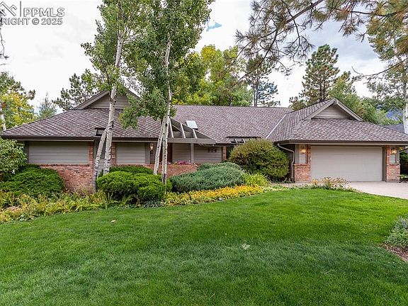 Great Opportunity in Broadmoor Valley! This beautiful walkout rancher is perfectly positioned a pristine lots in the neighborhood, offering views of the Country Club of Colorado golf course, the park, the creek, and the mountains. Enjoy true main-level living with a spacious primary suite featuring an oversized primary bathroom, a large walk-in closet with custom built-ins, and access to your own private covered deck overlooking a park-like backyard. The main level boasts hardwood floors throughout and a gas fireplaces for warm, cozy evenings. The large kitchen offers an expansive eat-in area, a walk-in pantry, and a butler’s wet bar leading into the formal dining room—perfect for entertaining. The formal living room showcases custom built-ins, a gas fireplace, and large windows that frame the stunning outdoor scenery, with access to a second deck. Step outside to the spacious Trex deck off the kitchen, ideal for hosting dinners, entertaining guests, or relaxing in the shade while enjoying the beautiful surroundings. Downstairs, you’ll find three additional bedrooms, two bathrooms, and a large family room with a second gas fireplace. Step outside and enjoy the lush backyard and garden areas—a perfect extension of your living space. This home is ready for its next owner to add personal touches and make it their own. Enjoy a prime location where you can walk to some of the finest restaurants in southwest Colorado Springs, the Country Club of Colorado, and nearby parks. Hiking trails are just a short drive away. Best of all, the home is located in the award-winning Cheyenne Mountain School District 12, home to the #1 rated high school in the state of Colorado. With easy access to I-25 and Highway 24 for quick trips to the mountains and ski resorts, and just minutes from Fort Carson and downtown Colorado Springs, this property offers the perfect balance of convenience, lifestyle, and location.