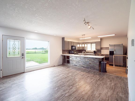 Discover peaceful living with unbeatable convenience in this well-maintained 3-bedroom, 1 3/4 bath home sitting on a spacious 1-acre lot—perfectly positioned just off the I-80 Minden exit and only minutes from Kearney! Enjoy water views from the back patio, a fenced-in backyard for added privacy, and a walkout basement. Inside, the home features a large, open-concept kitchen and dining area with all appliances included, and a cozy wood-burning stove for added charm. Outside, you'll find a 2-car oversized detached garage complete with a heater—ideal for year-round projects. There’s also a small storage shed and a larger outbuilding that includes an office space with its own furnace, electrical, and propane tank. With quick access to the interstate, country views, and functional space inside and out, this property offers the best of both comfort and convenience!