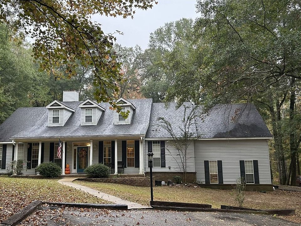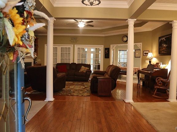 Welcome HOME to this beautiful property that reminds of Southern Living on rolling acreage! Enjoy watching the birds, deer, and other wildlife from your own front and back porches! This home features four bedrooms and two full bathrooms in a split floorplan with the primary bedroom suite on one side and guest bedrooms and bath on the other. The primary bathroom boasts a large walk-in closet. There's also plenty of entertaining spaces for the whole family, with a living room and dining room right off the entrance, and a family room nearby, too. The sunroom will be a cozy area to stay warm in the upcoming cooler days ahead, while allowing you to enjoy your scenic property. The kitchen features TWO pantries, a work island, a breakfast bar, and eat-in area. The half bath is conveniently located off the kitchen for your guests. The office space inside the two-car garage allows much needed privacy for your family members that need to work from home. Above the garage there's a huge attic for additional storage. Don't wait to make your appointment to see what all this property has to offer you!