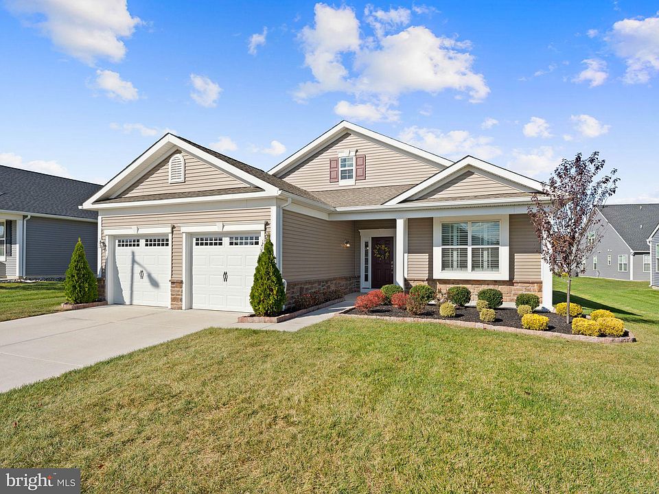 Experience easy, elegant living in this stunning St. Andrew’s model located in the highly sought-after 55+ community of Stirling Glen! Built in 2021, this 4-year-young home blends modern comfort with timeless style, offering over 2,000 square feet of beautifully maintained living space. Step inside to find a grand foyer flowing into an open layout with  high ceilings, custom wainscoting, crown molding and elegant recessed lighting that create a bright, open feel from the moment you enter.  The exterior upgrades showcase beautiful stone cladding, a 3-tiered roof design, and perfectly manicured landscaping with an in-ground sprinkler system adding the perfect finishing touches. The thoughtful layout includes a formal dining room, perfect for entertaining, and a gourmet kitchen featuring an extended island, quartz countertops, upgraded soft-close cabinetry, Energy Star appliances, built-in microwave, under-cabinet lighting, and gas cooking range.  The bright sunroom is a standout feature, ideal for morning coffee or quiet evenings at home. The flex/bonus room with French doors provides the perfect space for a home office or den. The primary suite offers a peaceful retreat with a spacious walk-in closet and a spa-like ensuite bath featuring dual vanities and a tile shower with a built-in bench.  Additional highlights include interior custom window shutters throughout, a walk-up attic for abundant storage, a two-car garage, and energy-efficient systems for year-round comfort. Enjoy a low-maintenance lifestyle with lawn care and snow removal included, plus access to Stirling Glen’s resort-style amenities—clubhouse, fitness center, outdoor in-ground pool, ballroom, and more. Located just minutes from local favorites like the farmers market, golf course, and shopping, this home offers both convenience and community in one perfect package. Don’t miss your chance to own one of the finest homes in South Jersey’s premier 55+ neighborhood—schedule your private showing today and experience the best of Stirling Glen living!