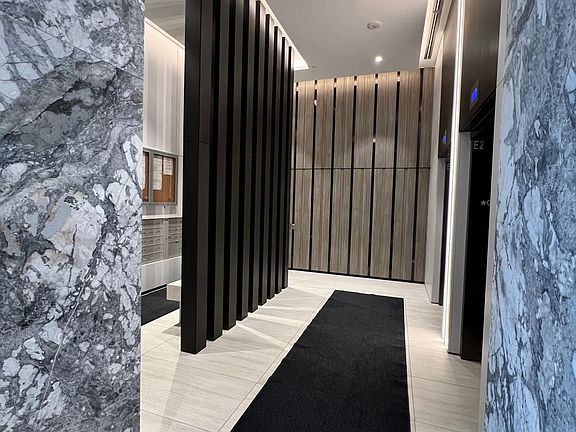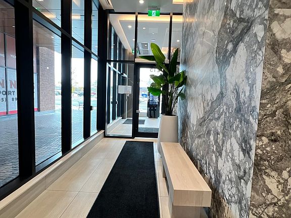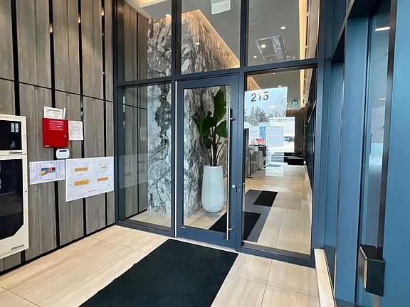 Tenanted, available from Jan 1st, 2026. One of the biggest 2-bedroom + den units in the building. The primary bedroom has a walk-out balcony overlooking the plaza across the street. NEW blinds in the unit. Convenient location: school, grocery shopping, library, BEACH and lake access just behind the building. Non-obstructive view. Parking + locker included, Hi-speed WIFI included in the lease cost