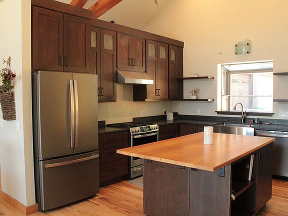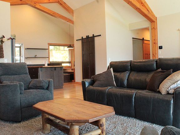 This beautifully appointed 4-bedroom, 3-bath home sits on a quiet private road, surrounded by evergreens and mountain views, offering the perfect balance of seclusion and convenience.