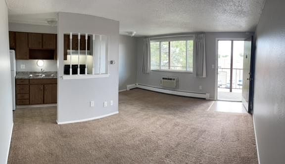 A typical floorplan has an entry with living room and attached dining area close to the kitchen. The bedroom(s) and bathroom is attached via a hallway. Amenities in the kitchen typically include a full size range/oven, double sink, cabinets, and refrigerator. Select apartment homes also have dishwashers. Bathrooms typically have a sink, mirror, toilet, and tub/shower. The living room has a wall air conditioner. A select few of our apartment homes have fireplaces.