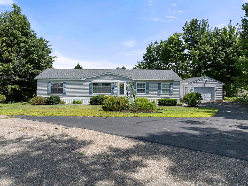 Briarcrest Estates — Nestled in the tranquil rural area of Laconia, this spacious, well-maintained home offers attractive one-level living. The inviting residence features a year-round heated sunroom, perfect for relaxation and enjoyment. The well-designed floor plan includes a large living room, a primary bedroom with two walk-in closets, a full bath with a walk-in shower, and a soaking tub. Two additional bedrooms and a full bath provide ample space for family or guests. The eat-in kitchen boasts ample counter and cupboard space, ideal for preparing delicious meals. Enjoy your morning coffee in the sunroom, savoring the peaceful surroundings, or step out onto the large deck to relax and entertain friends over lunch. For convenience during New Hampshire's seasonal storms, the property includes a spacious one-car garage with room for tools and supplies. This charming home offers comfort, space, and practicality in a serene setting.