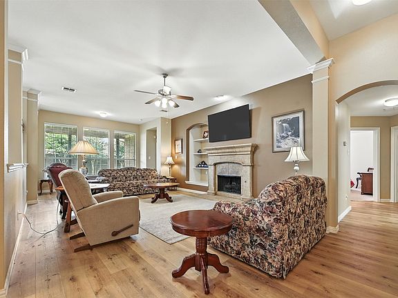 Gas fireplacePrivate backyardStainless steel appliancesGranite countertopsCovered patioSpacious walk-in closetLush landscaping
