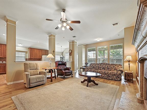 Beautifully maintained, this 4-bedroom, 3,124 sq. ft. home in the desirable Woodcreek community offers the perfect blend of space, style, and functionality. The open floor plan includes two dining areas, two living spaces, and a private office. A welcoming living room with a gas fireplace and built-ins flows seamlessly into the gourmet kitchen, complete with granite countertops, a large island, breakfast bar, stainless steel appliances, and a cozy breakfast nook. The primary suite features dual vanities, granite counters, a walk-in shower with body sprays, and a spacious walk-in closet. Three secondary bedrooms share a full bath, while a private office and half bath add flexibility. Upstairs, an expansive 30x16 game room with an additional half bath provides the ideal retreat for family or guests. Step outside to enjoy a covered patio, lush landscaping, sprinkler system, and a private backyard with storage shed. Additional features include luxury vinyl plank flooring, decorative lighting, ample storage, and a 2-car garage. Residents of Woodcreek enjoy resort-style amenities such as pools, a fitness center, jogging and biking trails, parks, and playgrounds. All of this is just minutes from shopping, dining, and highly acclaimed Rockwall ISD schools. Don't miss your opportunity to make this home your own!