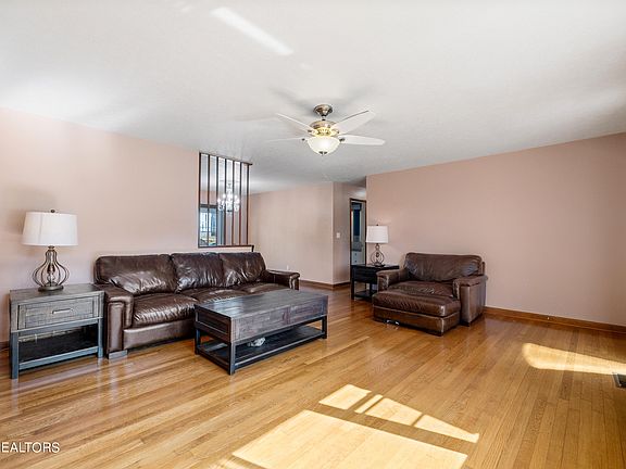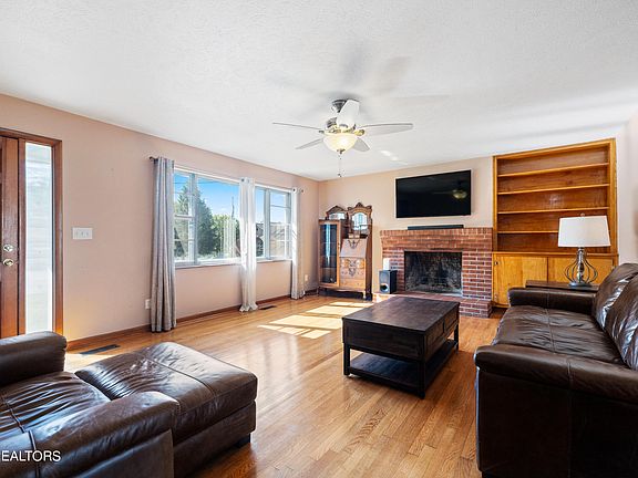 Outdoor enthusiasts will love the short distance to NORRIS LAKE with a public BOAT LAUNCH and three FULL SERVICE MARINAS, WINDROCK ATV PARK, ROYAL BLUE and BRIMSTONE. Located in picturesque Rocky Top Tennessee with a revitalizing downtown, this sprawling rancher sits upon a large CORNER LOT just across the street from the LIBRARY. With FOUR BEDROOMS and 1.5 baths, the home features ORIGINAL HARDWOOD flooring---NO CARPET here. There are TWO WOOD BURNING FIREPLACES, built in nooks flank both. The living room is light-filled and has BUILT-IN bookcases. The kitchen has ORIGINAL WOOD CABINETRY including an old-timey POTATO BIN, full length CABINETS that open and go all the way through on both sides of the BREAKFAST BAR. The kitchen has a large EAT IN BREAKFAST ROOM (washer & dryer can be easily relocated in the UTILITY ROOM just off of the carport) . ALL APPLIANCES stay. This home has a SPLIT BEDROOM FLOORPLAN. The PRIMARY SUITE has its own HALF BATH & FIREPLACE. The additional bedrooms are amply sized. The WATER HEATER is 4 years YOUNG. The yard is mostly FENCED and level. GRILLING PATIO out back. There's also a UTILITY ROOM and 10X12 SHED. CIRCLE DRIVEWAY for ease in entering and exiting the TWO CAR CARPORT. This home can be used as a PRIMARY HOME or a SHORT TERM RENTAL PROPERTY.