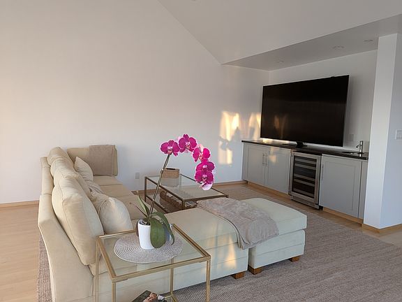 The penthouse is furnished with a full kitchen and stainless steel appliances including a Thermador 6-burner range with hood, KitchenAid refrigerator/freezer, Bosch dishwasher and a full-size washer and dryer. Wifi and utilities are shared 50% with the other unit.