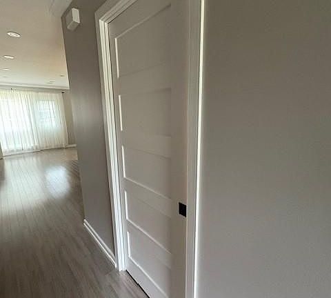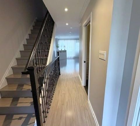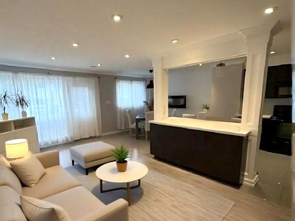 Welcome to this beautifully professionally renovated townhome located in a highly desirable neighbourhood. Spacious open-concept living and dining area with pot lights, ceiling speakers and large windows brining in natural light. Elegant hardwood flooring for a warm, contemporary look. Modern kitchen featuring dark cabinetry, quartz countertops, and an island with accent lighting - perfect for entertaining. Notable feature includes central vac system with convenient kick plate for easy clean-ups. Textured accent wall and built-in electric fireplace. Fully finished basement with pot lights and laminate flooring, laundry room with custom cabinetry and quartz countertops. The basement is ideal as a family room, recreation area, home office or guest suite. Upstairs, you'll find 3 spacious bedrooms with custom closet organizers and updated bathroom with integrated accent lighting. Enjoy outdoor living with a private backyard, perfect for relaxing or entertaining. Parking perks, enjoy the convenience of an attached single car garage plus a sought after two-car driveway providing generous parking space for residents and guests alike. This townhome is within walking distance to (MiWay & GO), schools, parks, grocery stores. Close to all major highways (403/401/QEW). Move-in ready - just unpack and enjoy modern living at its finest! High speed internet Included in maintenance.
