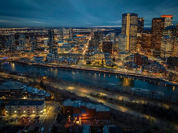 Welcome to Discovery Hill, an exclusive luxury condominium residence perfectly perched in the prestigious community of Crescent Heights. Overlooking the river valley with unobstructed, panoramic views of the downtown skyline, this remarkable home presents a rare opportunity to experience elevated urban living at its finest. Spanning an impressive 2,294 sq ft of single-level living space, this residence blends refined style with exceptional scale. Flooded with natural light from oversized floor-to-ceiling windows, the open-concept design frames the cityscape from nearly every room, creating a breathtaking backdrop day and night. At the heart of the home is its stunning living and dining area—an expansive, elegant setting ideal for both grand entertaining and intimate gatherings. A wood-burning fireplace infuses warmth and sophistication, while the seamless flow highlights the dramatic skyline beyond. The updated chef’s kitchen is beautifully appointed with a large central stone island, ceiling-height cabinetry, newer appliances, and a full walk-in pantry. Designed for both effortless cooking and everyday connection, it offers exceptional functionality and style. Retreat to the impressive primary suite, a serene sanctuary featuring a luxury 5-piece spa-inspired ensuite, generous walk-in closet, and soothing wood-burning fireplace. Step onto your private balcony to enjoy tranquil mornings or unwind with sweeping skyline views—a truly indulgent escape. Two additional spacious bedrooms complete the home, including one enhanced with a versatile Murphy wall bed. A dedicated laundry room with sink and additional in-unit storage add everyday convenience. Cork flooring throughout the home provides comfort, warmth, and durability. Two underground parking stalls and premium amenities elevate the Discovery Hill lifestyle even further, featuring: A fully equipped fitness centre, a relaxing sauna, a stylish and spacious party room, perfect for hosting gatherings and also bike storage for added convenience and security. Set just moments from river pathways, Prince’s Island Park, vibrant Bridgeland cafés and restaurants, shopping, transit, and downtown, Discovery Hill offers unparalleled access with the serenity of living above it all. A home of rare scale, timeless sophistication, and captivating views—your elevated retreat in Crescent Heights awaits.