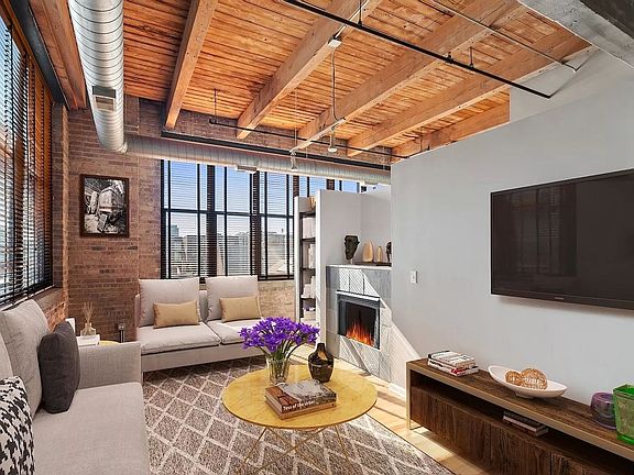 Awesome corner unit timber loft in prime West Loop location features two bedrooms, two bathrooms, exposed brick walls, high ceilings, balcony, gas fireplace, in-unit laundry and hardwood floors. Large windows with custom window treatments. Open layout is perfect for living and entertaining. Bedrooms have no doors and are separated from other living spaces by 3/4 wall. Cable TV, internet and water included. Tenant responsible for gas and electric. Heated garage parking space available for an additional $200 monthly fee. Easy access to CTA, expressway, bars and restaurants on Randolph and Fulton Market. Pets considered on a case-by-case basis subject to approval.