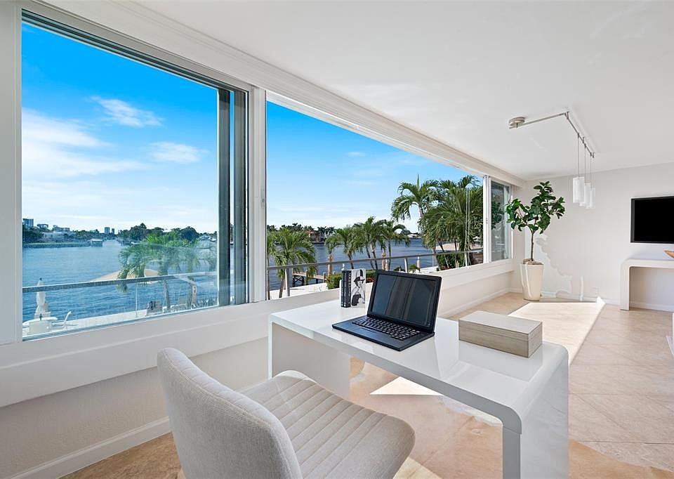 Experience the ultimate in waterfront living at The Versailles, an architecturally striking mid-century modern boutique building just one block from Fort Lauderdale Beach. This second-floor residence offers panoramic intracoastal views and a front row seat to the daily boat parade. A spacious, open-concept layout featuring a large kitchen, freshly painted interiors, and tile flooring throughout. Wall-to-wall stacking impact windows seamlessly blend indoor-outdoor living, showcasing the breathtaking water views. Enjoy the convenience of being moments from world-class dining on Las Olas Blvd and nearby beachfront restaurants. A Water Taxi stop is just one street away. A stunning new pool deck, and brand-new roof nearing completion, adding to the building’s appeal and long-term value.