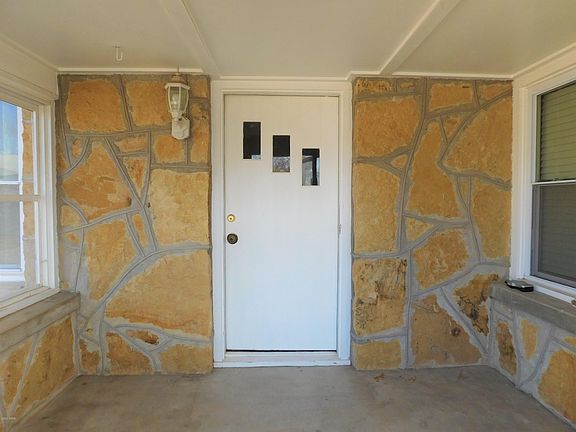 This immaculate Missouri stone house sits on a corner lot. Step into the enclosed front porch, a great place to sit and enjoy the seasons and watch the world go by. Open the front door to the beautiful wood floors in this open floor plan . Large living room, open designated dining area. The kitchen is nice sized, with tile flooring and complete with updated cabinetry, spacious counters, and a breakfast bar. All appliances stay. There are two generously sized bedrooms with the same beautiful wood floors as the living and dining room. The full bath centrally located and offers more storage than most. Tucked away off of the kitchen is a laundry room, washer and dryer convey with the house. The two car detached garage is equipped with an auto opener, and is well lit with motion lights over