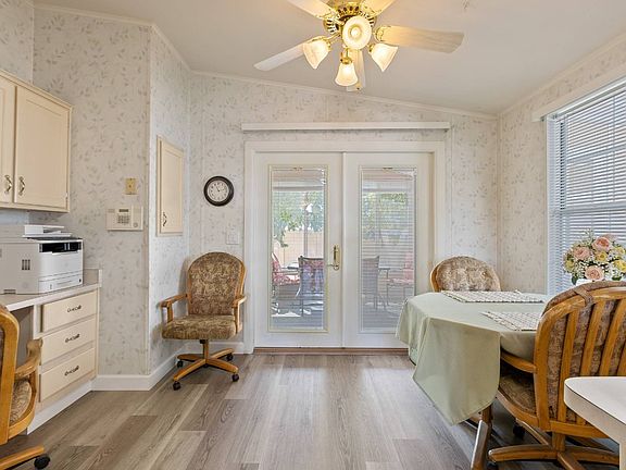Meticulously maintained with renovations in 2025. Upgrades include 100% waterproof LVP flooring throughout the entire home, 6 new AZ room tinted dual pane glass sliders, fresh paint, and updated lighting. French door access from the kitchen AND primary retreat open up into the AZ room creating an amazing space for entertaining guests. Semi private oasis location features no rear neighbors with 3 gorgeous mature citrus trees. The covered tandem carport features extra width and length with a professional epoxy finish and adjacent golf cart parking. Transferable warranties on HVAC, LVP flooring, Pex plumbing, roof, water heater, and termite treatment. Ask for a detailed fact sheet on all of the amazing extras for this home. Call today to schedule a tour of this remarkable home! Newer roof - 2016 Primary suite retreat Morning room with built in desk Storage shed Zero carpet inside of home............................. Experience Thesman Communities Lifestyle, we are an active 55 plus community where luxury meets affordability. For over 40 years we have set the standard with world class amenities and year-round activities. Our community is a 24-hour gated community, with a beautiful 20,000 square foot clubhouse including ballroom, fireside lounge, library with computers and individual rooms for cards, billiards, arts & crafts and fitness center. Enjoy outdoor amenities heated pool & spa with cabanas, BBQ area, pet park, sport courts for pickleball, tennis, bocce, shuffleboard and basketball. Our activities director assures a full calendar of social and recreation events. Our shuttle bus makes it easy and convenient to attend sporting and special events, plus local shopping. Whether you want to relax or stay active our vibrant communities offer everything you need to enjoy life to the fullest. Discover Thesman Communities and start living the Thesman Lifestyle today!