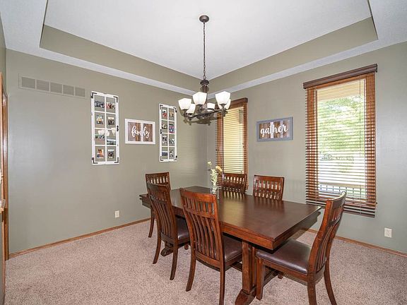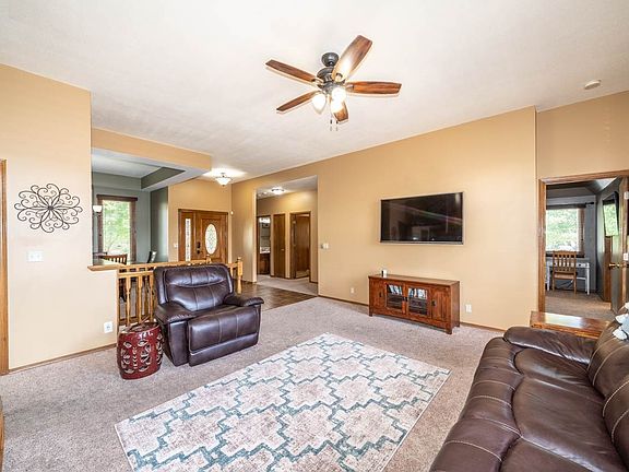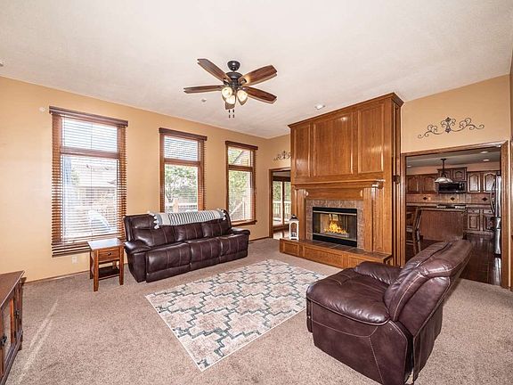 Exceptional one story in Rainbow Lakes! 215 N Racehorse features 6 beds and 3 full baths with updates throughout! With an expansive feel, you will love the layout of this home! The main floor offers formal living and dining room, two-way wood burning fireplace and nice flow between rooms. The large eat in kitchen includes wood flooring, granite counters, new stainless appliances and granite island. Three main floor bedrooms include the large master suite with ensuite bath which features, his/her sinks, walk-in closet, soaker tub, and new shower. Two guest bedrooms have easy access to full guest bath. Main floor laundry is an added convenience. The lower-level provides plenty of space for family room and recreation area, walk-out access, 3 large bedrooms, and full bath. You will love the outdoor space with large deck, covered patio, irrigation system with irrigation well and views of the lake. Recent improvements include new Impact Resistant roof, new deck railing, new front porch railing, new stainless appliances, newer heat and air, and more! Goddard schools and close proximity to the best of West Wichita! Come see today!