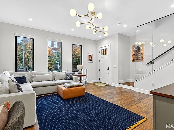Welcome to the Artizen on West Pine Townhomes — where modern design, chic style, and effortless city living come together. Built in 2023, this contemporary townhouse showcases soaring ceilings, wide-plank wood flooring, expansive picture windows that flood the home with natural light, and high-end designer finishes throughout. The spacious formal living room welcomes you in and flows seamlessly into a stunning chef’s kitchen featuring sleek cabinetry, an upgraded tile backsplash, an oversized quartz island, and top-tier stainless steel appliances. An additional open living area just beyond the kitchen provides the perfect flexible space for lounging, entertaining, or creating your ideal setup. Upstairs, the primary suite impresses with its generous walk-in closet, a spa-inspired bathroom with a floating dual-sink vanity and glass shower, and a private balcony — your perfect spot for morning coffee or evening wind-downs. A secondary bedroom with a custom walk-in closet, a full bath with a tub/shower combo, and a dedicated laundry closet complete this level. The top floor is designed for entertaining, featuring a wet bar with a beverage fridge and a PRIVATE ROOFTOP TERRACE — an incredible urban oasis with room to gather, unwind, and take in the surroundings. The finished lower level adds even more versatility with an additional bedroom, full bathroom, and an oversized two-car garage with great storage options. The garage leads to a private, gated drive court shared by residents. With exceptional space, thoughtful design, and an unbeatable location, this townhouse offers the ultimate blend of luxury and vibrant city living. All within walking distance to the Cortex, IKEA, BJC and the best of the Central West End.