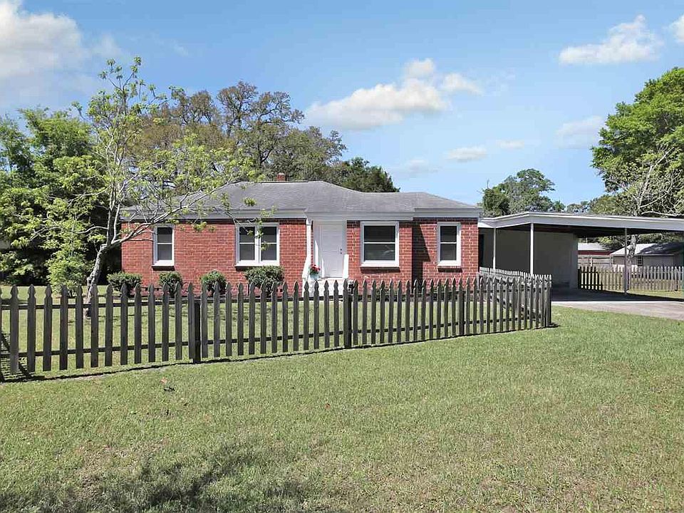 Nestled into this Waterfront Neighborhood is this Adorable Brick Cottage. This home sits uniquely on this Corner Lot that is almost 1/2 acre. Catching your eye first will be the neatness of the property and the cute picket fence outlining just a portion of the large yard. There is a carport here as well. As you enter the home, the hardwood floors are breathtaking! There is a large living room here and a large Dining Room. The New Kitchen features tile floors, a BRICK WALL in the kitchen, granite counters, new cabinets, stainless sink and new lighting. There is even room in this kitchen for a breakfast bistro set. There is a large laundry here with folding table and additional storage and there are 3 bedrooms down the hall and one adequate bath. Everything here is Clean and Pristine!!! Continue on to the Screen Porch and there is an additional private space (could be a guest suite or extra bedroom) with hardwood floors, closet and 1/2 bath. Also, there is an attached workshop area and a covered patio. There is a new HVAC system here and New Hurricane Rated High Impact Windows TOO! What else could you need or want? This home has it all! But, don't wait - it won't last! Call The Freed Team Today!