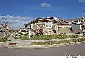 Corner lot with immediate access to walking trails. Gorgeous and spacious ranch in sought after Erie Commons. Open layout that includes family room, dining area, and kitchen with granite counter tops; and all within viewing range of the gas fireplace. Hardwood floors throughout the dining area and kitchen. Generous sized master bedroom includes luxurious 5 piece bath. Covered patio overlooking your newly landscaped back yard. Full basement with 5 egress windows for your future expansion. Great proximity to Old Town Erie and easy commutes to Boulder and Denver. Main Floor study is currently advertised as 3rd Bedroom.