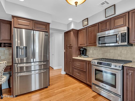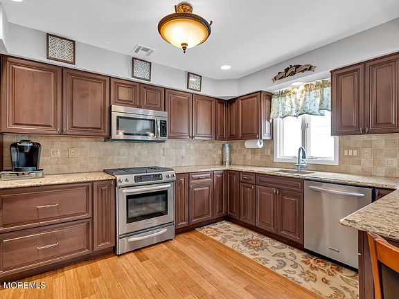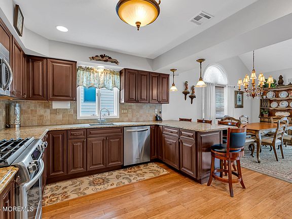 Truly immaculate, meticulously maintained home on West Point Island in Lavallette with heated in-ground pool. Kitchen w/ bamboo flooring, granite countertops, stainless appliances, breakfast counter & desk area. Kitchen is open to the dining area. The living room has vaulted ceiling, a wall of windows & a skylight plus a gas fireplace. Flooring for LR and 2nd floor bedrooms is WW carpet. Den features large windows, sky lights & has an electric fireplace. Utility room has W/D and stall shower. Second floor has an attractive primary bedroom w/ an electric fireplace & an en-suite bath. Two additional bedrooms,(one w/ pull down attic space), & a half bath. There is also a small sitting area by the balcony. Outside area with awning as well as other seating around the pool area.