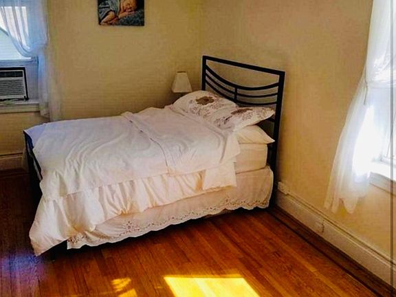 Very nice and spacious apartment located on 3rd floor in Tudor Estates. Building is convenient to NYC Bus and train station, close to Rt 3 and Rt 17. Unit features large Eat-in-Kitchen, good size living room, 1 Bedroom, full bath, high ceilings and hardwood floors. There is additional storage in the basement, coin operated Washer/Dryer and charming shared patio/yard. Owner pays for Heat and Hot water Broker fee $1650