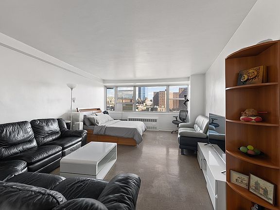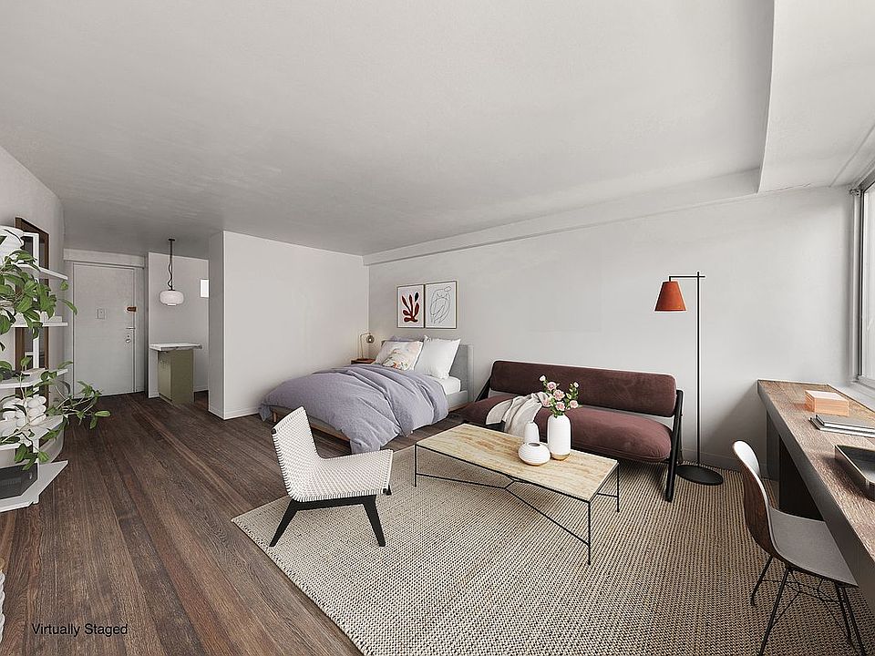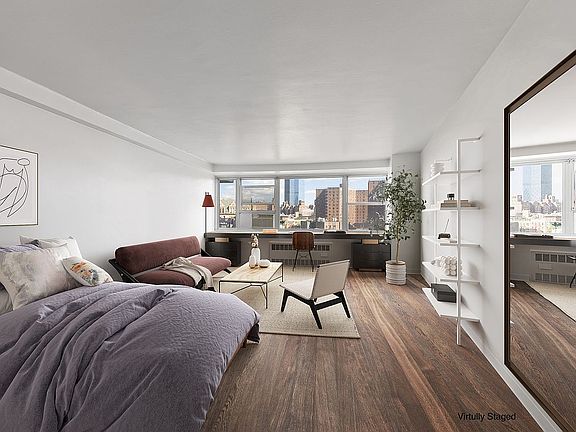 This studio apartment has a flexible layout that offers the perfect canvas to create your dream home. It has an expansive living area, a separate full size windowed kitchen, great closets and storage space. A wall of southeastern-facing windows infuses the living space with natural light and offers dynamic city views. Super low monthly maintenance!