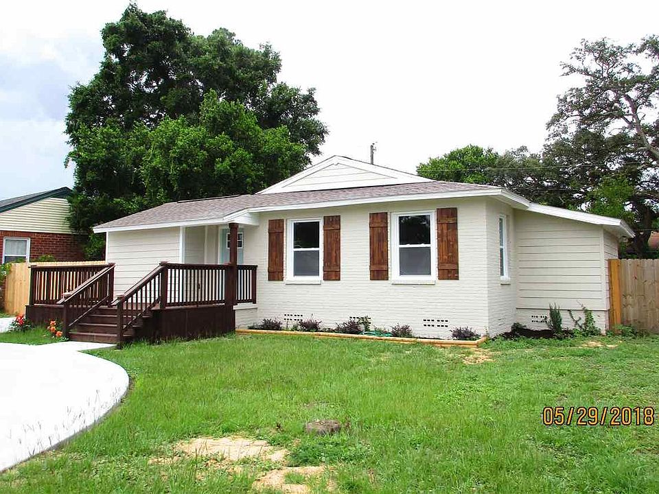 TOTALLY RENOVATED inside and out...New HVAC, flooring, bath and kitchen,deck, custom cabinets, all lighting/fans replaced...and, WAIT until you see the incredible Master Bath Rainfall shower head!! Recessed lighting & ceiling fans w/ lights, walk in closet in Master Bath, plus another closet in Master Bedroom. Fenced, washer/dryer hook ups. Sparkling bathrooms and all new appliances. Navy Point is just 5 minutes from NAS front gate. Walking paths that wind around Navy Point along the water with stunning views day and night, boat launch area. You will have to see this home to believe how beautiful it is and just minutes to vibrant downtown area and beaches. No pets or smoking please. Call to schedule a showing anytime.