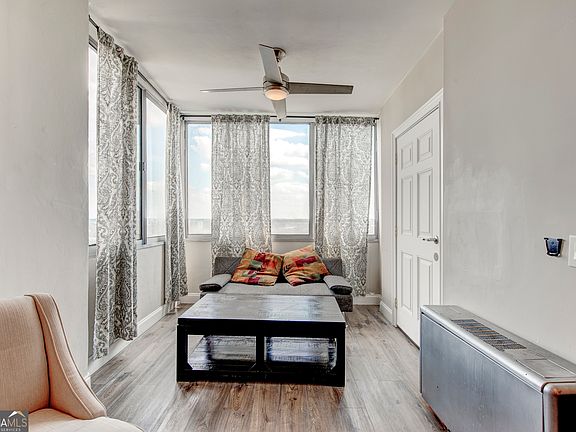 Experience FABULOUS city views in this beautifully FURNISHED 2-bedroom, 1-bathroom condo, perched on the second-highest floor of a high-rise building in the heart of Downtown Atlanta. This bright and airy unit features ABUNDANT NATURAL LIGHT, expansive SKYLINE views, and a thoughtfully designed open layout perfect for entertaining or relaxing. The kitchen is equipped with STAINLESS STEEL appliances, while the SPACIOUS bedrooms offer comfort and flexibility for residents or guests. The renovated bathroom adds a modern touch, and the unit is MOVE-IN ready for a variety of uses. This turn-key property is being sold FULLY FURNISHED, making it ideal for immediate occupancy or as a plug-and-play rental. Located in a building with NO RENTAL RESTRICTIONS, this condo presents a rare opportunity for SHORT-TERM rental income, LONG-TERM tenants, or personal use as a stylish urban home. The monthly HOA dues include utilities and INTERNET, providing convenience and added value. Step outside your door and walk to Georgia State University, Mercedes-Benz Stadium, State Farm Arena, Centennial Olympic Park, and other iconic Atlanta attractions. With quick access to public transportation and major highways, this location offers unmatched connectivity to the best the city has to offer. Don't miss the chance to own this stunning, high-floor condo in one of Atlanta's most desirable downtown buildings!