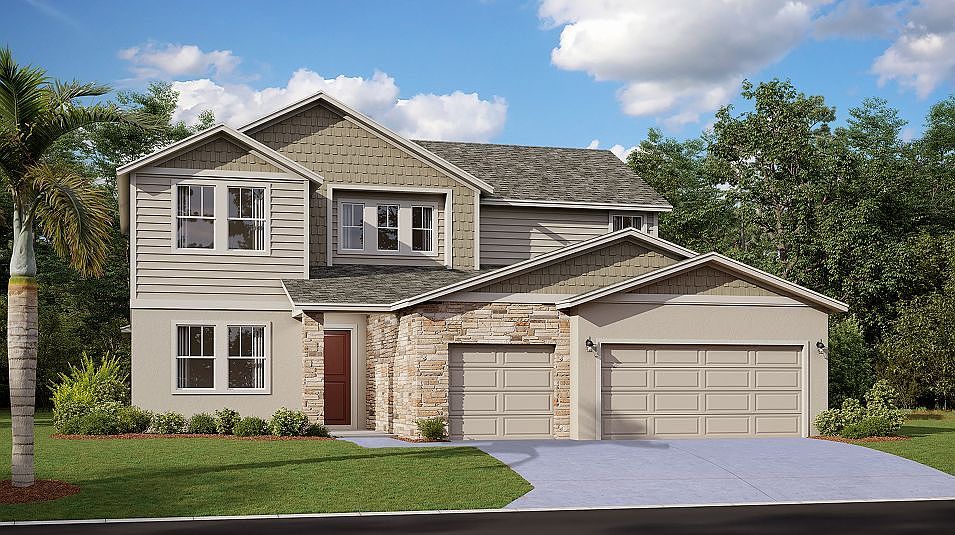 Discover this stunning new two-story home, boasting an expansive design and convenient three-car garage on a spacious corner lot exceeding 12,000 sq ft. The first floor features an open-concept family room, chef-ready kitchen, cozy dining room, private office, and spacious lanai. The tranquil owner's suite with attached bathroom is also located on this level. Upstairs, you'll find three secondary bedrooms, a bonus room, and flexible space to suit your needs. Showing is an appointment only.