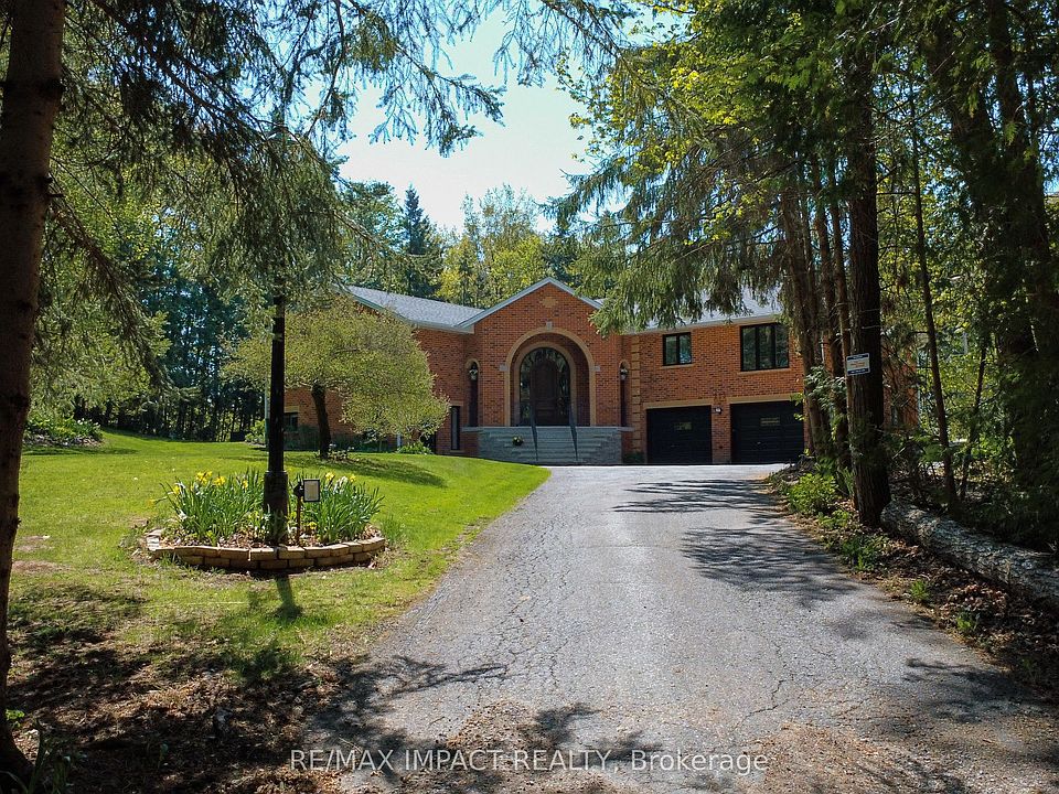 Discover the tranquility of country living in this beautiful brick raised bungalow, nestled privately away from the road on 25 acres, featuring 2 road frontages and bordered by the Oshawa Creek along the west boundary. There is a myriad of trails, ideal for exploring the natural surroundings of wildlife, white pine, Norway spruce, European larch, red oak, sugar maple and black walnut trees, currently under a Managed Forest Plan which reflects in lower taxes. This home features an over-sized double garage and charming 1-bedroom apartment with separate front entrance, perfect for multi-generational families or in-law suite. This ground level unit offers privacy and convenience, making it an ideal space for extended family members or guests (not retrofitted). As you enter through the custom 9' arched door elegantly framed by a matching arched side lite, there is a sunken foyer that leads to an open-concept kitchen/dining/great room accented with a Belgian White Ale pine ceiling and expansive triple pane/Low E windows, highlighting the extensive renos/updates completed in the last decade. Enhancing the culinary experience is an impressive kitchen with huge centre island, quartz counters, breakfast bar, s/s appliances, custom coffee bar and custom dining room cabinet, plus a butlers pantry with built-in wine fridge. Walkout to an inviting protected wrap-around deck or relax in the hot tub. The great room is equipped with an efficient hybrid catalytic wood insert, boasting modern technology and traditional design. The primary suite has a sitting area, walk-in closet and luxurious marble finished ensuite where you can unwind in a soaker tub set in a picturesque bay window or indulge in the spacious shower with rain showerhead. The main level also includes 2 good sized secondary bedrooms, each featuring a walk-in closet. Throughout the home, there is beautiful oak doors/trim and some trendy flooring that includes hand-scraped bamboo hardwood, travertine and porcelain tiles.