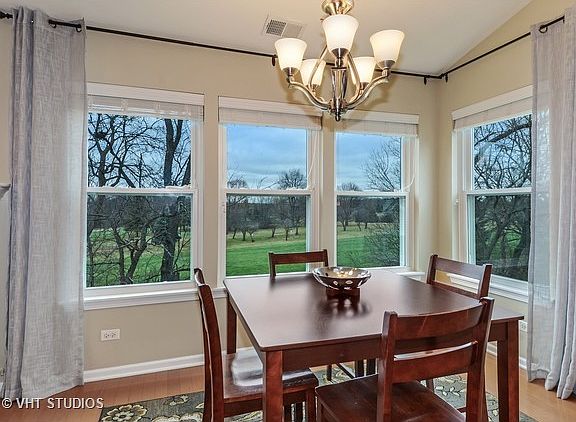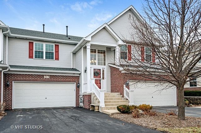 Immaculate and Open! 2nd floor ranch townhome with OVER 2000 sq ft. Home featuring large sunny eat-in kitchen surrounded by windows. Kitchen also has breakfast bar, upgraded cabinetry, new stainless appliances. Huge master bedroom suite has walk in closet and great views of wide open space. Luxury master bath with whirlpool tub/separate shower and double sinks. Formal Dining room large enough to fit your entire set of DR furniture. Beautifully open great room has gas fireplace. Fully enclosed over-sized office/3rd bedroom - you could make this room anything you need it for, all perfectly done! 2nd Bedroom has walk in closet. Convenient laundry room; washer & dryer stay. Brand new windows throughout. Hardwood floors. You will enjoy sitting on this oversized covered balcony/deck with incredible views - it will make this an easy choice. 2 plus car garage with a driveway that will also hold multiple cars. 5 min to tollway, bike trails, nature center & Premium Outlet Mall.