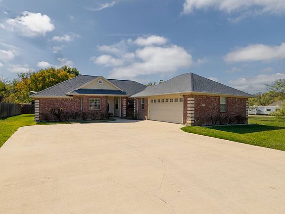 One owner. This three bedroom plus brick home with oversized two car garage is at the PERFECT PRICE POINT with a view of Lake Bridgeport off the front. Just add a neat garden bench area to sit and watch sunset or sunrises. No cookie cutter home that looks like your next door neighbor's house on the street or down the street - custom built, back when quality construction was the norm. There is a built in storage cabinet tucked away in a hidden and solid room off the master bedroom closet. Fresh paint, new dishwasher, WOOD burning fireplace, and awesome location with easy access to everything our quaint and cute little town can offer and more. This home has a sprinkler system and a great mature tree standing tall in the backyard. Mature rose bushes in the front, utility sink in the garage, gutters and just as cute as a button. Community outdoor swimming pool, swimming beach and fishing pier. Boat slips rental slips are available through the City of Runaway Bay.