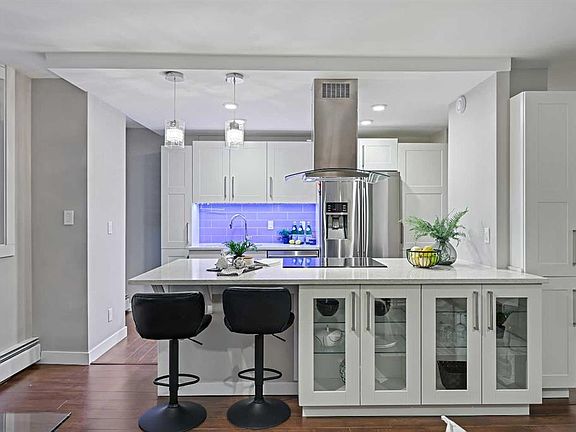 Welcome to Fontaineblue Estates - no, not the one in Vegas, its right here in YYC! This 2 bedroom 2 bathroom open concept condo is exactly what you have been looking for. This corner unit extremely spacious, and has a functional open concept floorplan with over 920 square feet of living space AND a WRAP AROUND BALCONY with beautiful downtown views. The secondary bedroom has a murphy bed which is so convenient, you can use this spacious room however you see fit. The Primary bedroom is huge, easily fits a king bedroom set, and has a beautiful en- suite attached to it with a massive glass walk in shower. The open concept unit has a lovely living room, separate area for a dining room, a beautiful wood burning fireplace, but the true show stopper is the incredible chefs kitchen. From the stone counters to the range hood, to the island with built in storage features throughout, this kitchen is a dream. This unit has massive windows allowing tons of natural light in, and 2 balcony doors to enjoy downtown views from your wrap around balcony. This secure building has undergone all its needed maintenance from the balconies, to the doors and windows - its ready for you! The location here is PRIME, across from a beautiful park, tennis courts and First street food hall, and is a walk away from amazing restaurants and shops.