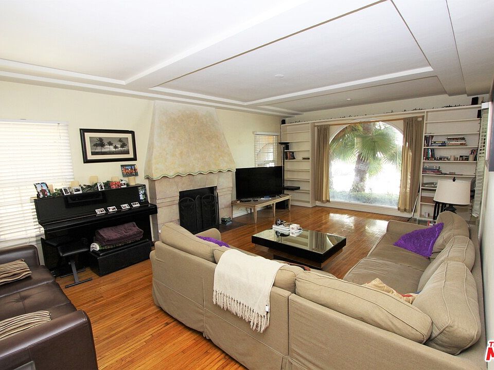 4 WEEKS FREE RENT!! Great location, walking distance to Horace Mann School. First floor of a Spanish style Duplex with many original details. Spacious Living room with coved and beamed Ceiling & electric Fireplace. Hardwood Floors throughout. Formal Dining Room Family Room. Open kitchen with lots of natural light. Abundant closet space, A/C, washer/dryer, refrigerator, stove, dishwasher, and microwave. High speed Internet & cable ready. Gated driveway leads to 2 car garage & charming back patio area/ bbq to share with upper unit. Ready to move in!