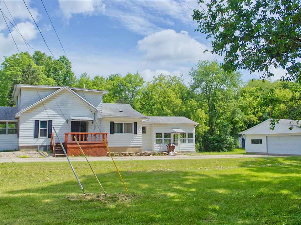 Well located 4 bedroom 2 bath home that sits on 5 wooded acres. This home has many great features starting with the 3 plus car garage that gives you plenty of room to park cars and have storage and work spaces. The enclosed patio is a great space to enjoy these long summer evenings as well as open deck off of the dinning room and enclosed front porch. Recently updated kitchen that maximizes storage and counter space. Main floor bedroom with en-suite bath and main floor laundry are always a plus. The 5 acre property is mostly wood for your outdoor enjoyment. All new windows throughout the home installed in 2020. This home and property have many other great features you must check out. Call today for more information and to schedule a showing.