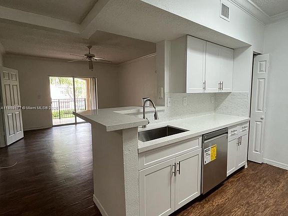 This elegantly modern 2 bed 2 bath 1,648 sq condo in Pembroke Pines features spacious living and dining areas. Modern wood cabinetry and newer appliances in an open kitchen. The living room opens to an expansive balcony, providing additional space for entertaining. Because of the open floor plan, this is an ideal urban retreat. Gated compound with an excellent location in front of the Pembroke Lakes Mall. Clubhouse, Pool, Gym, Barbeque Stand, Cabanas, and more.