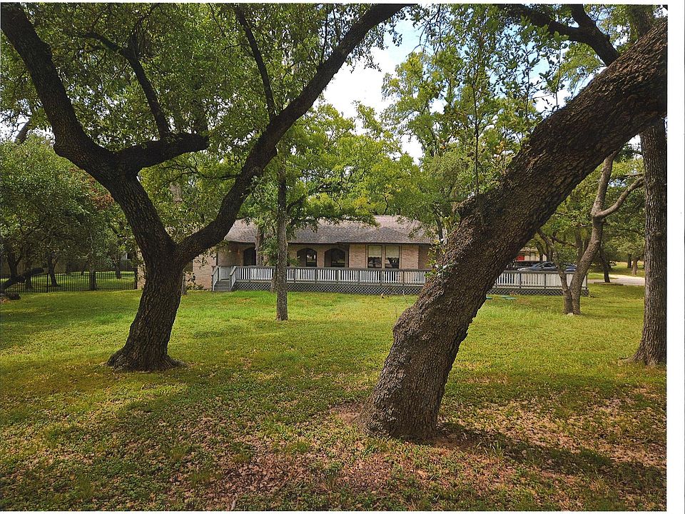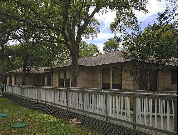 This Mediterranean-style estate home with old world charm in a park-like setting of trees & character, offers many renovations reflecting its now approximately 2,650 sq. ft. Resting on +/- 1.3 wooded acres, there are no HOA fees. This Single Level Home has a fenced back yard, workshop, storage shed and minimal landscaping with an automatic aerobic sprinkling system. An oversized 3-car garage + extended driveway provides a lot of parking. The front of the home, accessible by a wooden walkway, is accented by arched openings to a covered porch + front entry door. Inside this spacious 3-bedroom, flex room, 2 full + 1 half bath home is an abundance of storage, natural woodwork throughout, attic whole-house fan, smart thermostats, 3 ceiling fans, 2 HVACs, 2 water heaters, carpeted bedrooms plus porcelain tiled floors with designer touches in the main living areas. The Great room: vaulted beamed ceiling, recessed & solar lighting, raised-hearth wood-burning fireplace, built-in shelves/cabinets, large windows, and formal dining. The flex room: office, hobby, gym, schoolroom or formal dining. The eat-in kitchen: granite countertops, glass cooktop, microwave/convection double oven, dishwasher, faux painted walls, tile backsplash/flooring, pantry and many storage drawers & cabinets, The laundry room: washer/dryer hookups, built-in cabinets & shelves. Half bath: pocket door, convenient access from patio and garage. Bedroom Wing: two guest bedrooms, a full bath with skylight, multiple hall storage closets, spacious Primary on-suite bedroom: recessed lights, and many windows. Distinctive features: built-in TV/storage cabinet, bay window seat with under storage, and a large walk-in closet with pocket door. The on-suite bath features Corian countertops, cabinet/drawer storage, soaking tub, walk-in shower, seat & safety rails plus separate toilet area. French doors open to an outdoor oasis: in-ground fiberglass pool, private patio and new wooden deck with wrought iron railing.