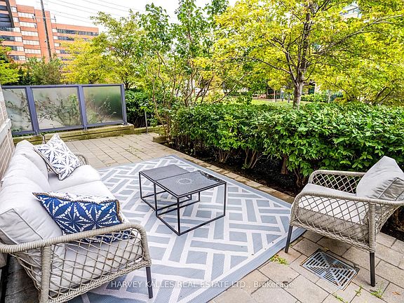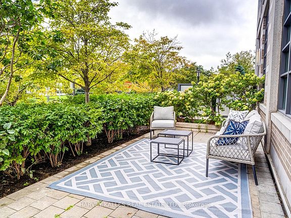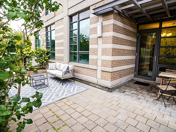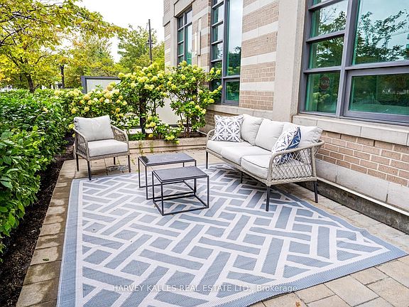 Sun-drenched and stylish, this ground-floor gem offers a rare blend of indoor comfort and outdoor serenity. Expansive windows and soaring 9-foot ceilings flood the interior with natural light, creating an airy, open feel throughout the living space. But it's the 300 sq ft private terrace that truly sets this suite apart, an exceptional extension of your living area, ideal for quiet mornings, weekend lounging, or alfresco dining with friends. Tucked just off a peaceful laneway, it offers both privacy and a seamless connection to the outdoors. Inside, every detail has been thoughtfully curated. From custom granite countertops to designer light fixtures and mirrored closet doors, the unit reflects a cohesive, elevated aesthetic. Elegant finishes, refined detailing and custom window shades contribute to a polished, move-in ready space that feels as functional as it is beautiful. Steps from the Etobicoke Creek Trail, this home is perfect for pet lovers and nature seekers alike. Sherway Gardens, TTC access, and the QEW/427 are all minutes away, placing you at the crossroads of convenience and lifestyle. Whether you're hosting on the terrace or commuting with ease, Unit 109 offers a rare opportunity to enjoy the best of both worlds...comfort, connection and everyday luxury!