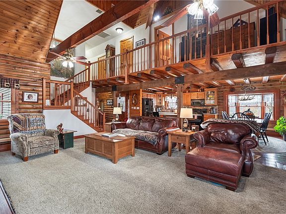 NESTLED AMONGST 4 ACRES THIS CUSTOM LOG HOME AWAITS THE NEW OWNER..FULLY EQUIPPED KITCHEN WITH ISLAND...NEW COUNTERTOPS AND STONE BACKSPLASH..GLEAMING WOOD FLOORING THROUGHOUT THE FIRST FLOOR WITH A FLOOR TO CEILING STONE LOG BURNING FIREPLACE.. PLENTY OF NATURAL LIGHT FROM AN ABUNDANCE OF WINDOWS..FIRST FLOOR PRIMARY BEDROOM WITH ENSUITE..2 BEDROOMS AND A FULL BATH COMPLETE THE SECOND FLOOR..FINISHED LOWER LEVEL OFFERS A FINISHED GAME ROOM WITH BAR, A FULL BATH AND SPACIOUS LAUNDRY ROOM WITH BUILT IN CABINETS AND COUNTER SPACE...22X12 UPPER DECK...17X12 MIDDLE DECK AND 24X17 LOWER DECK WITH HOT TUB...30X8 COVERED FRONT PORCH WITH RECESSED HOT TUB...30X25 BARN WITH 2 STALLS(COULD BE 4) AND HAY STORAGE ABOVE...40X35 MORTON BUILDING..2021 FURNACE AND HOT WATER TANK...GENERAX SYSTEM