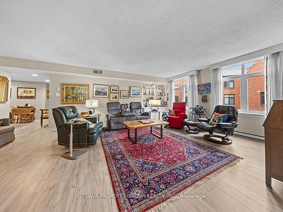 The unicorn of downtown condos. Units are rarely available at 215 Somerset. This 4th floor home overlooks the well landscaped courtyard with views towards Elgin Street. The long term owners take pride in maintaining all common areas as exhibited by the beautifully maintained gardens and grounds. Original floorplan was greatly modified adding more interior living space and larger primary bedroom and walk in closet. At approx. 1500 sq.ft. the main living area allows for separate themes as well as a bright dining area. The kitchen includes an eating bar as well as a further sitting area. One underground exclusive parking space as well as a spacious locker unit. Just steps from Elgin Street this building offers all required amenities within walking distance. This location has a walkability of 12 out o 10. Enjoy the Rideau Canal, historic Spark St. and of course a stroll around parliament. This building is well known for it's mature and professional owners who cooperate in maintaining all common areas. Will be vacant November 1st