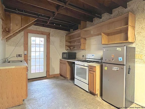 Considering a renovation project? Don't miss this opportunity in New Paltz...a Super Cute Cottage with a large accessory building behind, perfect for studio space of all kinds. Enter onto an open first floor with kitchen and access to 2 screened porches. Head up to the second floor for the bedroom and bathroom. A breezeway connects the two buildings. There are 2 mini splits in the accessory building that could be moved to the first and second floor of the house for ultra efficient heat and a/c. New septic system is going in now, an insulated concrete slab in the cottage ~2016, well ~2010, roof on both buildings approx 15 yrs, vinyl windows approx 15 yrs, 200 amp service in cottage with 100 amp sub panel in accessory building. Wallkill Valley Rail Trail access is just down the road. Easy access to Mohonk Preserve and Minnewaska State Park, less than 5 min drive to the Village of New Paltz.