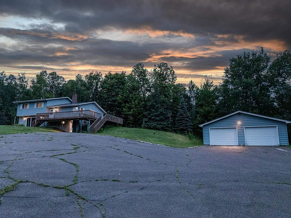 Welcome home to this charming ONE-owner, 3-bedroom, 2-bathroom home on a spacious 5-acre lot in Duluth. Newly updated and so much to see! New flooring, kitchen countertops and freshly painted. You first walk into this property and notice the spacious kitchen and dining room, all three bedrooms on one level, and a few stairs down to the living room-sliding glass doors to your backyard with a lot of natural light. A bonus room that could be turned into a game room, music room, or bedroom. The wrap-around deck provides you the space to overlook the property. This house is for you if you need space to store cars or want a workshop. Three detached garages-YOU heard me right-3! Each garage has its unique charm, showing the owner cared for their garages. Another bonus is that one of the garages features finished square footage- providing options galore; a game room, home office, or space for guests to sleep. This is a property you can't miss!