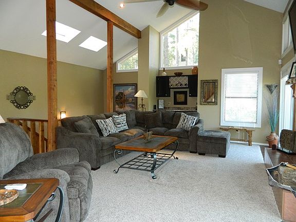 Charming Mountain Home with stunning Sierra Blanca view in a great neighborhood. Enjoy it all from the living room with a wet bar, high vaulted ceilings, skylights, and a wall of windows that lets in the light and the views. Also enjoy these views with approximately 1300 Sq Ft of deck and a hot tub on the deck as well. Freshly remodeled new stucco, new flooring, new paint. This home has 3 bedrooms, 2.5 baths with a sleeping loft with it's own private deck. The living room windows not only have been tinted, but have remote controlled high tec shades. Storage Building stays, fully furnished - few exceptions. Access to home off Hull Rd between Snowcap + Timberline