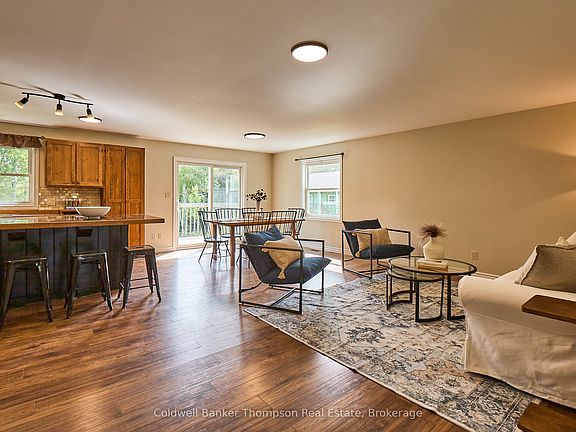 Charming, well-maintained in-town home on a deep lot, perfect for families or those looking for extra space. This property features 3 bedrooms upstairs, a walkout basement with a full in-law suite, and an attached garage for convenience. Inside, youll find warm wood tones and accents throughout, adding a cozy feel to the bright and functional layout. The rear deck overlooks a beautiful backyard, ideal for kids, pets, or summer entertaining, while the covered front porch is perfect for relaxing with a morning coffee. Located just minutes from downtown Huntsville, you can enjoy all the amenities this vibrant community has to offer including restaurants, shops, parks, and waterfront activities on the Muskoka River and nearby lakes. Outdoor enthusiasts will love the local trails, nearby ski hills, and access to Algonquin Park. This home is in the desirable Riverside Public School district, known for its excellent reputation, making it a great choice for families. With its combination of location, space, and a versatile layout, this property is move-in ready and offers plenty of options for multi-generational living or rental income from the separate suite.