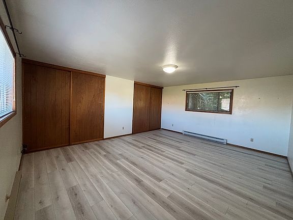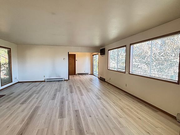 This inviting and spacious upstairs unit is available now! Located right above downtown Ashland, accessible to hiking trails, near many restaurants, and close to Shakespeare. This one-bedroom features a spacious living room with a wood-burning fireplace, and brand new LVP flooring throughout. In addition to the spacious living room, the kitchen has a charming feel with wood cabinets, an electric stove, a refrigerator, and a dishwasher. Along with your kitchen appliances, this home does feature laundry hookups in the attached single-car garage! Also features a stunning view of Grizzly Peak with a back deck included!
