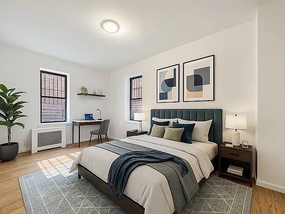 This two bedroom features a generous layout, hardwood floors accented by white dove paint , high-ceilings, and excessive natural light. The separate, renovated kitchen features sprawling granite-countertops, stainless steel appliances, dishwasher and white cabinetry. The kitchen opens to a LARGE living space flooded with natural light and sizable enough to accommodate dining as well. Two KING AND QUEEN-SIZED BEDROOMS with tons of closet space and again, tremendous natural light. The apartment also features a beautiful, windowed tile-bathroom